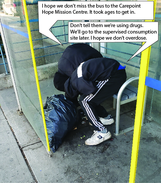 Across from the front of the he Hope Mission Bruce Reith Centre, their building offering meal services and just around the corner from the Herb Jamieson Centre, that has empty beds, people set up temporary shelters only to have them removed within days by clean-up crews supervised by police. Within hours those temporary shelters have returned. This is a huge investment in police and other city resources.